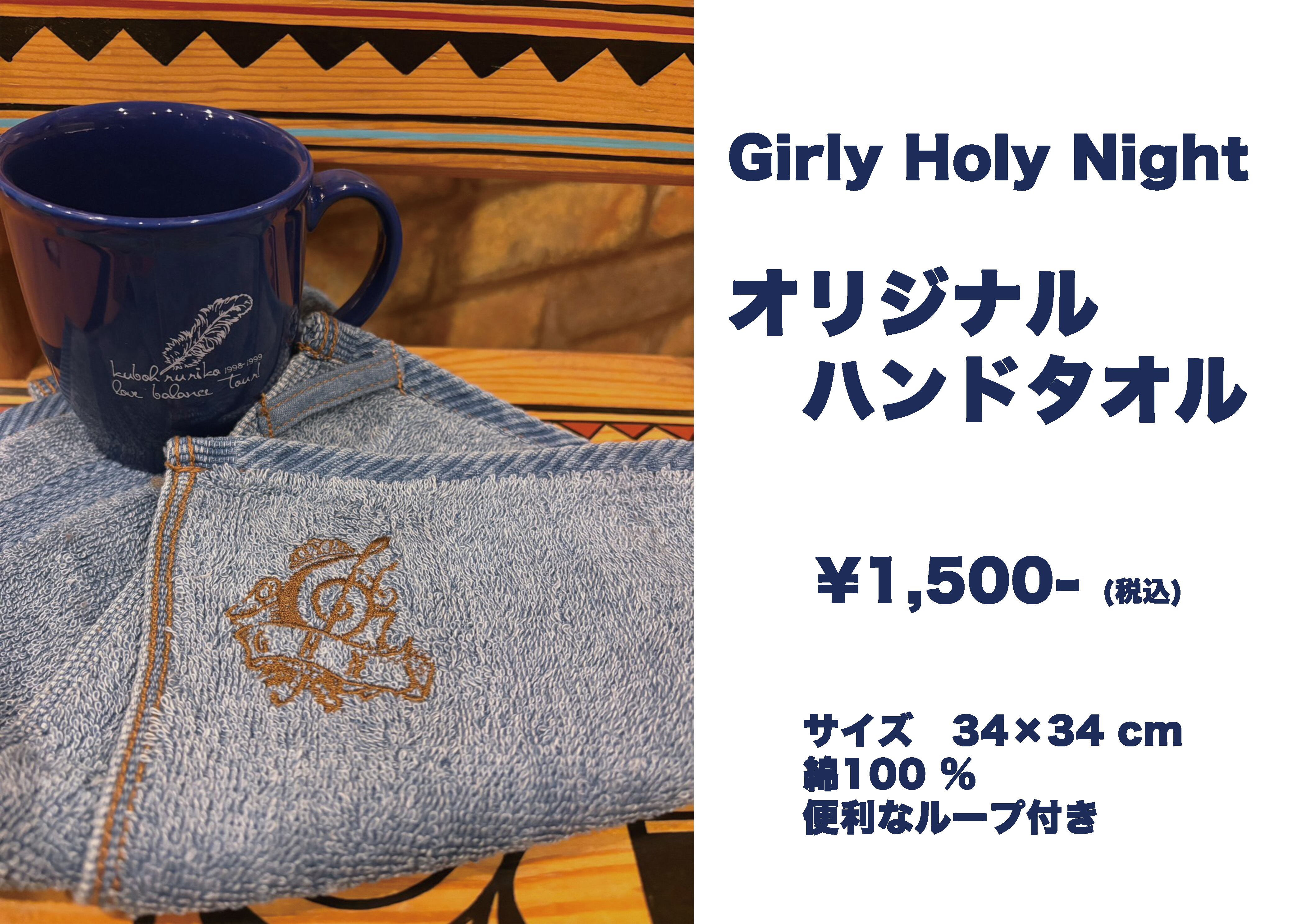 久宝留理子クリスマスイベントGirly Holy Night オリジナルロゴの刺繍がインディコ染のタオルとマッチして、カッコ可愛い一枚です